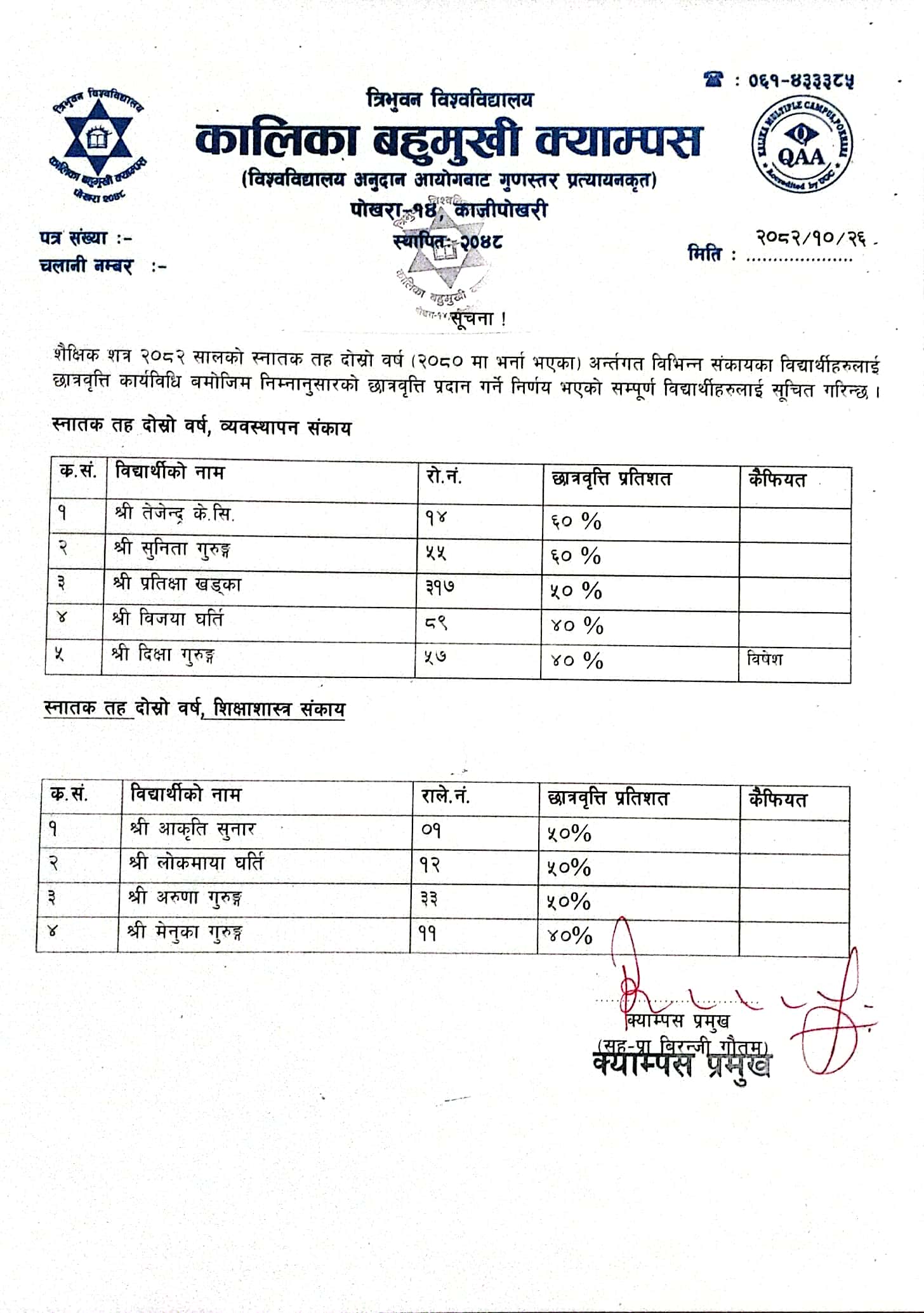 A QAA certified community campus established in 1990, affiliated with Tribhuvan University. KMC is the first campus in Gandaki province to offer Master's Degree in Rural Development Studies and is committed to providing quality education to students from diverse backgrounds.